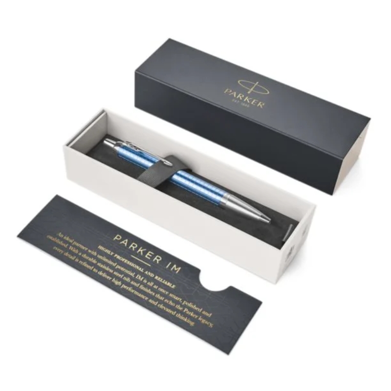 Là một người bạn đồng hành lý tưởng với khả năng vô biên, Parker IM mang đến thiết kế tân tiến, kích thích nguồn cảm hứng sáng tạo cho những ai đang khám phá những ý tưởng mới trên con đường khởi nghiệp. Với ngòi bút bằng thép không gỉ và phong cách hoàn thiện mang dấu ấn di sản của Parker, từng chi tiết đều được trau chuốt tỉ mỉ nhằm mang lại trải nghiệm viết lách đáng tin cậy.