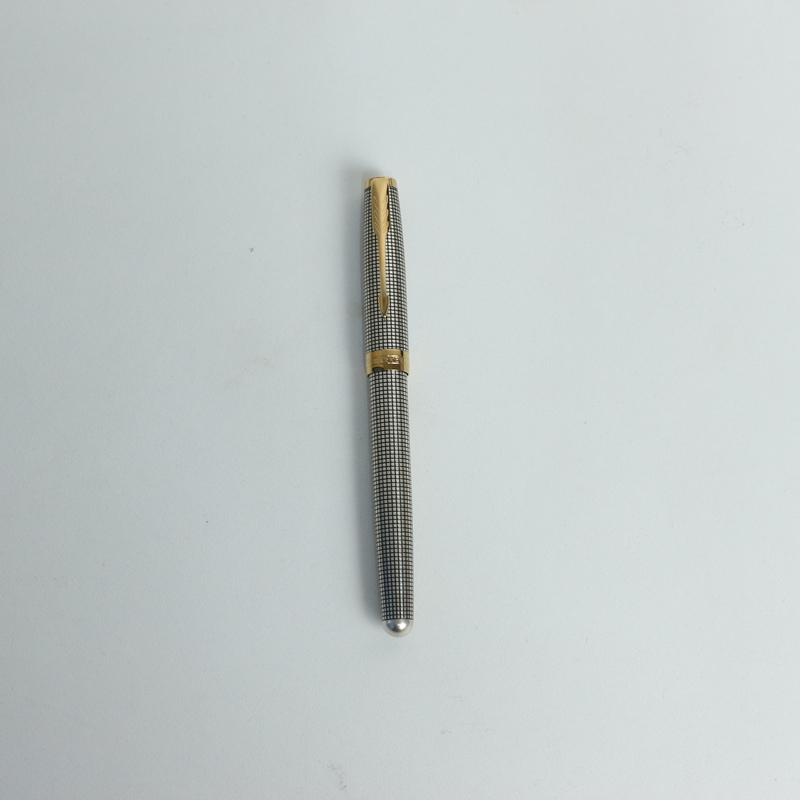 Thiết kế bạc sáng kết hợp chi tiết mạ vàng tạo cảm giác cực kỳ sang trọng. Viết rất mượt, cầm chắc tay, đúng chất Parker Sonnet.
