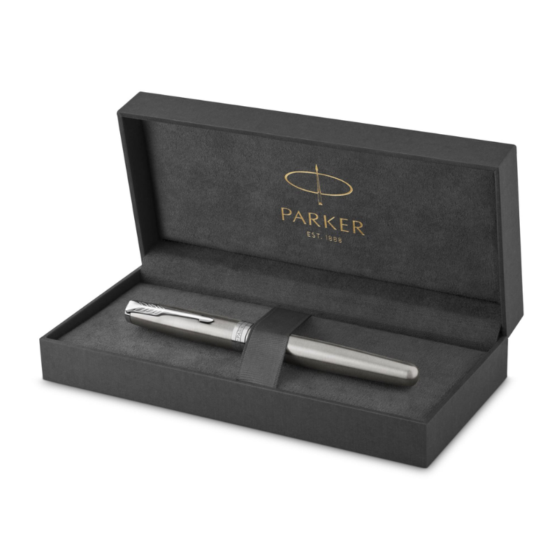 Bút Parker Sonnet X-ST Steel CT sở hữu kiểu dáng thanh lịch đặc trưng của dòng Sonnet. Thân bút bằng thép không gỉ được hoàn thiện tinh xảo, mang lại cảm giác chắc tay và bền bỉ. Các chi tiết mạ Chrome sáng bóng tạo điểm nhấn tinh tế, giúp người sử dụng thể hiện phong thái chuyên nghiệp trong các buổi ký kết, hội họp hay làm việc hàng ngày.